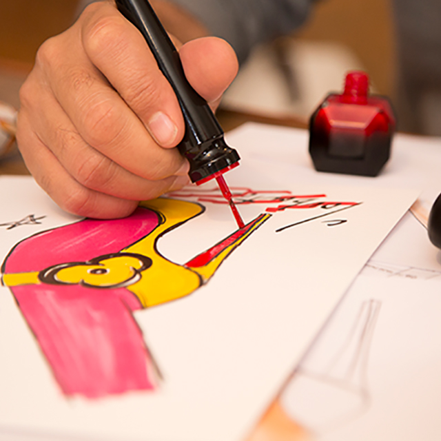 Christian peint la semelle de ses souliers à l'aide d'un vernis à ongles d’un rouge éclatant, créant la légendaire semelle rouge.