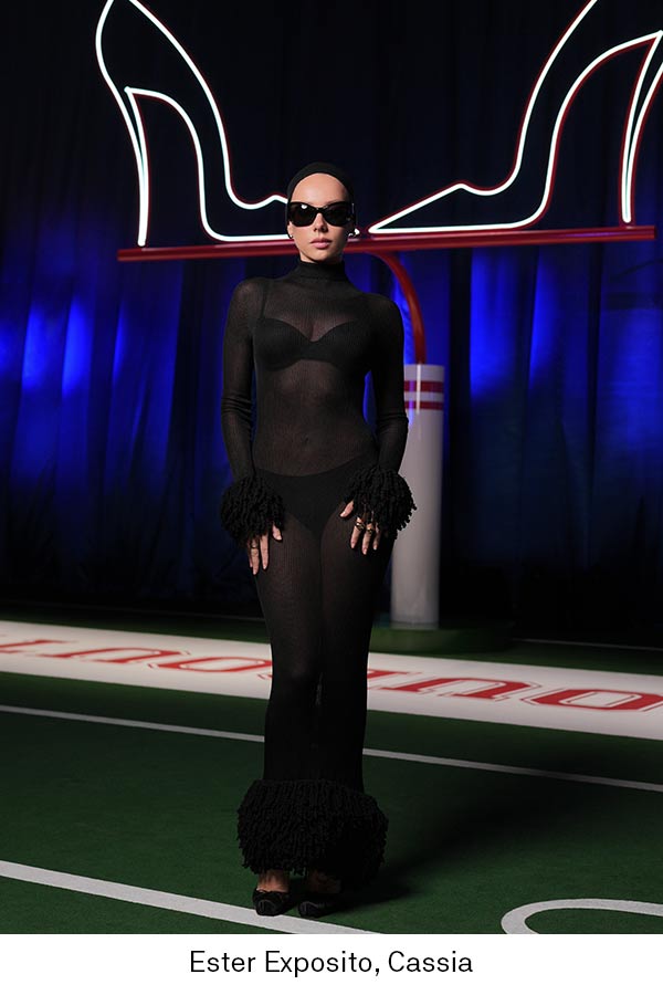 L’acte final rend hommage au savoir-faire et à l’imagination sans limites de Christian Louboutin, en revisitant l’une des créations les plus iconiques de sa carrière : la Ballerina Ultima, imaginée en 2007. Inspirée par l’extrême verticalité de la position « en pointe » d’une ballerine, cette pièce est réinterprétée à travers le prisme de l’escarpin Cassia et entièrement parée de strass. Présentée au sommet d’un gigantesque gâteau, transformée en bougies sculpturales et portée par les danseurs, cette œuvre magistrale célèbre l’artisanat d’exception et la vision théâtrale de la Maison.